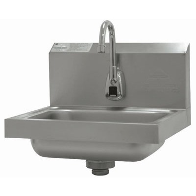 Electronic faucet uses infrared sensor to instantly start water supply by way of 4 "AA" batteries or 110V option.